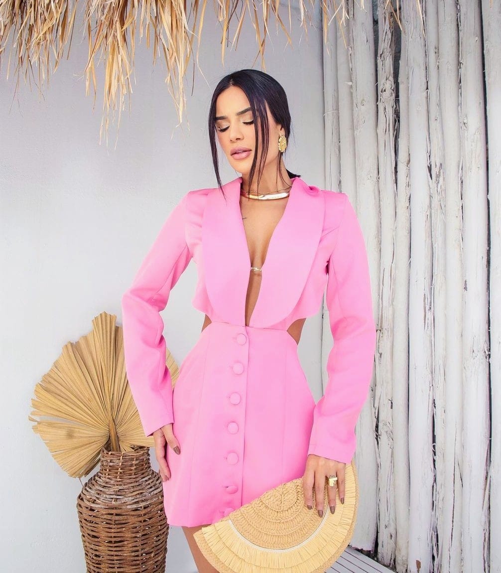 Vestido alfaiataria, manga longa e costas semi-nua.